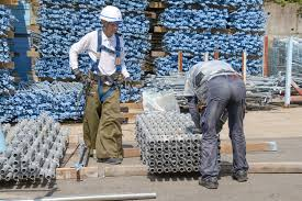 新現場で仮設材搬入、受水槽の仮がだい設置のため