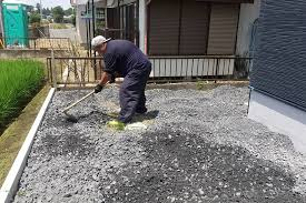 砕石敷きとは、建築物の基礎部分や駐車場、庭などに細かく砕いた石を敷き詰める工事のことです。地盤の強度を高めて建物の重みを支えたり、車が通る場所の沈下を防いだり、雑草の発生を抑制したりする目的で行われます。砕石を敷いた後には転圧を行い、地盤をさらに締め固めるのが一般的です。